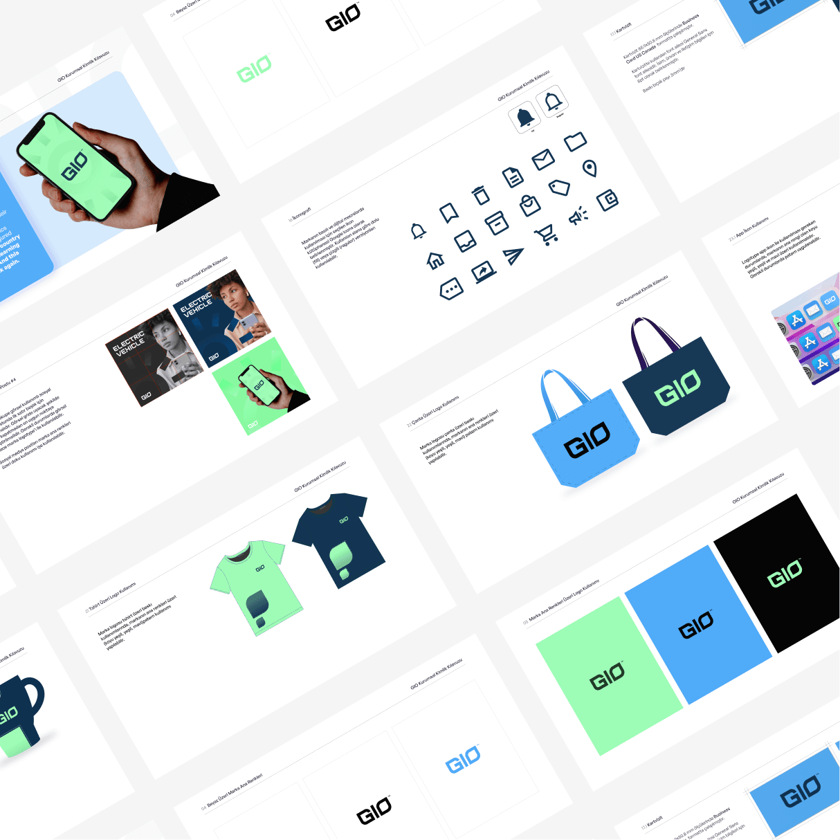 GIO için hazırladığımız kartvizit, zarf, e-mail imzası, mailing şablonu, promosyon malzemeleri gibi tüm kurumsal kimlik malzemelerini içeren ve bunun yanında renk kullanımlarından, ikon kullanımlarına, logonun minimum boyutundan, partner logo uygulamalarına kadar markanın standartlarını belirlediğimiz bir kurumsal kimlik kılavuzu hazırladık.